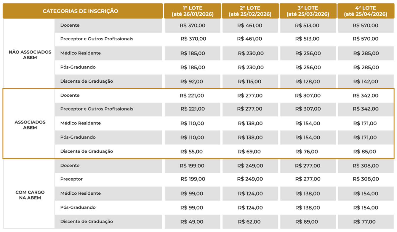 A inscrição pela modalidade de Pacote de Inscrições estará disponível a partir do 2º LOTE (27/01/2026).
